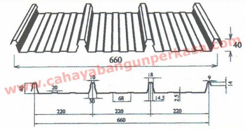Atap UNION CLIP PANEL adalah "Atap ZincAluminium", terdiridari perpaduan antara 43,5% seng, 55% Aluminium dan 1,5% silikon yang dikombinasikan menghasilkan produk yang luar biasa kuatnya. Perpaduan unsur Aluminium berguna untuk ketahanan terhadap karat, sedangkan unsur zinc berfungsi untuk kekakuan bentuk atap. Atap Zincalume Atap UNION CLIP PANEL PT. CAHAYA BANGUN PERKASA Atap UNION CLIP PANEL Dirancang dengan sistem yang canggih, dimana lembaranatap tidak mengalami pelubangan (Boltless), sehingga memberikan penampilan yangindah. Sistem pengikatan yang tersembunyi dibawah profil dan sistem penjepitandari bahan baja “High Tensile” memberikan ketahanan tinggi terhadapkebocorandan beban angin yang cukup kuat. SPESIFIKASI Bahan dasar : Baja High-Tensile G550 Tegangan leleh minimum : 5500 kg/cm2 Lapis lindung : Zinc-Aluminium Prepainted Zinc-Aluminium150 gr/m2 Tebal standar : 0.45 mm BMT atau 0.50 mm TCT Standar Bahan : ASTM A 792 Standar Profil : SNI BJTTAS Bentuk “H”(Baja Tegangan Tarik Tinggi bergelombang Trapesoidal tidak simetris lapis lakur aluminium seng untuk penutup dan dinding) Panjang : Maksimum 12.000 mm ( disesuaikan dengan kendaraan) Lebih dari 12.000 mm dikerjakan dengan roll ditempat. Bentuk NOK, FLASHING dan TALANG PT. CAHAYA BANGUN PERKASA Metode Pemasangan PT. CAHAYA BANGUN PERKASA Spesifikasi Bahan Bangunan Zincalume PT. CAHAYA BANGUN PERKASA Spesikasi Bahan Colorbond Thermatech PT. CAHAYA BANGUN PERKASA Zinc-Aluminium High Tensile G550 Baja ZincAluminium G550 adalah lembaran Aluminium yang memberikan kekuatan dan ketahanan tinggi terhadap pembebanan dan korosi. Baja ZincAluminium G550 diproduksi dengan proses “Continous Hot Dip” dengan kembang yang indah pada permukaannya, dan cocok untuk penutup atap, dinding, talang, kerangka rumah, knalpot, cerobong asap, dan aneka ragam keperluan lain yang membutuhkan daya tahan yang tinggi. Panduan lapisan terdiri dari 55% aluminium, sisanya seng dan silikon. Keuntungan menggunakan Zinc-Aluminium G550 High Tensile Kekuatan leleh baja bertegangan tarik tinggi Zinc-Aluminium G550 hampir dua kali lipat dari baja lunak atau Zinc-Aluminium G-300 karena perbedaannya cukup berarti, baja bertegangan tarik tinggi G550 yang digunakan untuk atap dan roofing dinding pada ketebalan yang sama memberikan keuntungan-keuntungan : Memperlebar jarak Gording Daya dukung beban lebih besar Tidak mudah terlipat, tertekuk atau penyok Tahan terhadap gores Fleksibel terhadap desain pengikat dan lebih mudah dalam pemasangan installations Tahan terhadap temperatur tinggi Reflektivitas (daya tolak) Panas Baja Zinc-Aluminium Indonesia terletak di daerah tropis dimana intensitas pancaran matahari pada musim kemarau dari pagi hingga sore, terjadi cukup tinggi. Baja lapis Zinc-Aluminium memantulkan sebagian besar panas (70%) dan 30% diserap. Selanjutnya mengalami pelepasan panas kembali ke permukaan atas dan bawah. Untuk temperatur ruangan di bawah atap yang paling baik apabila penyerapan panas pada atap absorsi dan pancaran panas yang dikeluarkan ke bawah atau kedalam ruangan harus kecil. Program-Program pengujian atmosfir di alam terbuka membuktikan bahwa: ketahanan terhadap korosi dari baja ZINC-ALUMINIUM, jauh lebih tinggi dibanding baja dengan lapisan galvanis biasa. Pada berbagai jenis uji lapangan di lingkungan pedalaman sampai dilingkungan yang sangat korosif seperti di daerah tepi laut, taraf korosi dibuktikan dengan contoh benda uji baja ZINC-ALUMINIUM dan baja berlapis zinc biasa, yang dibiarkan terkena pengaruh alam di udara terbuka. KETAHANAN TERHADAP KOROSI ATMOSFIR Panduan lapisan pada baja ZINC- ALUMINIUM yang memberikan proteksi Galvanis yang optimal dan menunjukkan suatu gabungan dari: Ketahanan yang lama dari lapisan Aluminium, Proteksi pengorbanan diri yang diberikan olehlapisan ZINC Lapisan panduan Zinc/Aluminium memberikan proteksi galvanis pada tepi-tepi bekas potongan, dengan mekanisme yang sama seperti lapisan galvanis biasa.Salah satu pembuktian-adalah dengan pengujian dimana pada potongan-potongan baja ZINC-ALUMINIUM dan Zinc-coated yang memiliki ketebalan lapisan yang sama, diberikan goresan-goresan dengan lebar yang bermacam-macam, sedemikian rupa sehingga dasar baja terlihat, dan kemudian dibiarkan terkena pengaruh atmosfir, dan dukungan terhadap Z/A AluminiumEMBOSS Aluminium adalah logam yang menarik dan secara praktis unggul karena tidak memerlukan perlindungan dan pemeliharaan. Aluminium juga merupakan bahan yang sedap dipandang, mudah dikerjakan dan karena sifatnya yang mudah menyesuaikan bentuk dengan keadaan setempat, maka penggunaannya tidak terbatas sesuai dengan selera para perencana. Dari sifat-sifat aluminium tersebut diatas, maka aluminium telah menjadi pilihan utama sebagai bahan penutup atap, dinding dan lisplank untuk bangunan pabrik, gudang, perkantoran dan lain-lain.Selain memenuhi persyaratan dasar sebagai bahan atap, dinding dan lisplank yaitu tidak berkarat, aluminium juga memiliki sifat-sifat mekanis dan sifat-sifat alamiah yang sangat sesuai untuk digunakan pada bangunan, oleh karena bentuk alaminya yang indah, ringan, memiliki sifat-sifat mekanis dan sifat-sifat kimia yang baik, bentuknya juga dibuat sesuai dengan permintaan, sehingga dapat memperkecil resiko kebocoran. "ZINCALUME" G-550 (Hi-Ten) Baja lapis Zincalume® merupakan baja lembaran lapis logam paduan dengan komposisi 55% Aluminium dan 45% Seng. Komposisi ini memberikan perlindungan yang prima sehingga baja ini cocok untuk berbagai aplikasi bangungan dan manufaktur. Dengan biaya yang setara, baja lapis Zincalume® memberikan usia pakai 2 hingga 6 kali lebih lama dibandingkan dengan baja lapis Galvanis pada aplikasi yang sama. Baja lapis Zincalume® memiliki lapisan resin jernih yang membuat permukaannya mudah di cat, mencegah goresan dan bercak tangan. Bersamaan dengan itu lapisan pasivasinya menjamin permukaannya yang keperak-perakan tetap terjaga. Tampilannya yang mengkilap memberikan daya pantul cahaya dan panas yang tinggi. Daya tahan pa