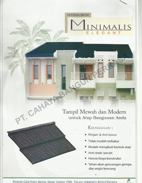 GENTENG METAL MULTIROOF dan MULTI COLOR adalah produk dengan jenjang tertinggi, Menghapuskan kekuatiran anda tentang atap bocor, genteng pecah, lumut atau jamur. Bahan metalnya yang kompak tetapi kokoh memberikan nilai tambah karena menghembat pemeliharaan dan tidak membebani konstruksi sebagaimana genteng jenis lain